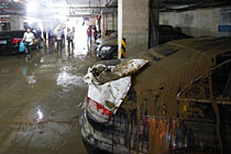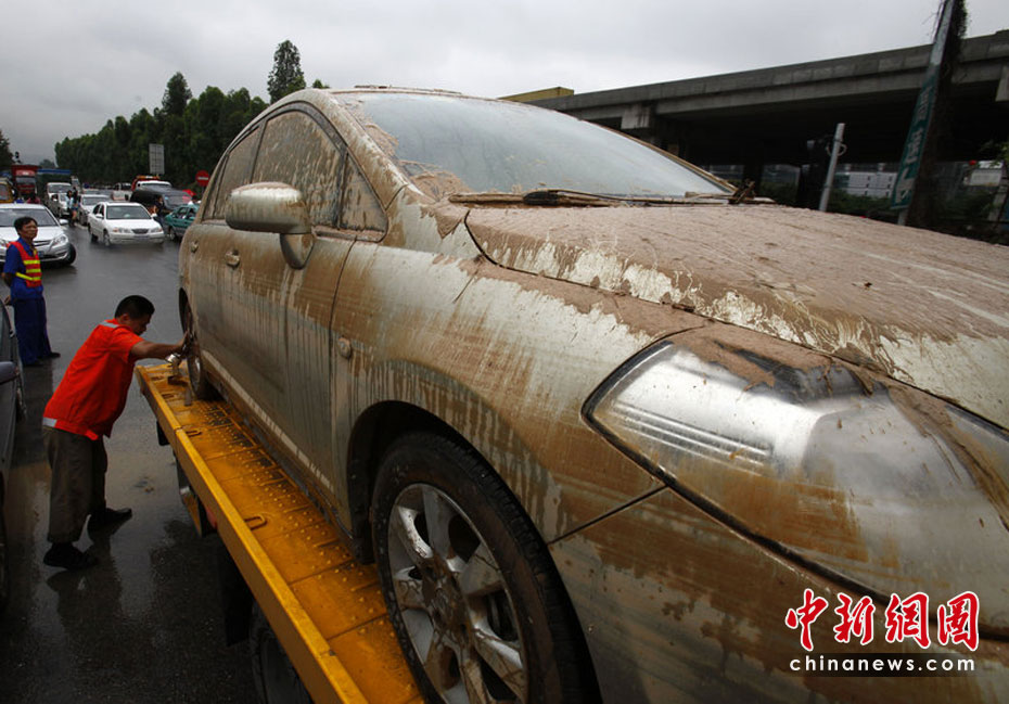 5月10日,廣州中海康城地下停車(chē)場(chǎng)遭水浸的汽車(chē)終于重新出水。受5月7日的大雨影響,廣州市東圃地區(qū)的中海康城的地下停車(chē)庫(kù)發(fā)生嚴(yán)重的水浸。經(jīng)過(guò)4天日夜不斷地抽水,5月10號(hào)上午,地下車(chē)庫(kù)里面的水終于干了。4天來(lái)一直轟鳴的水泵昨日終于停了下來(lái)。早晨7時(shí)許,眾車(chē)主陸續(xù)來(lái)到車(chē)庫(kù),370多臺(tái)車(chē)橫七豎八排開(kāi),幾只塘虱在淤泥里挪動(dòng)著。在拖車(chē)出庫(kù)的時(shí)候,不少車(chē)主淚流滿面。