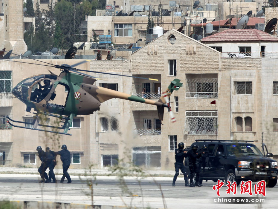 5月11日,約旦特種部隊(duì)在安曼空軍基地附近舉行演習(xí),為特種作戰(zhàn)部隊(duì)展覽會(huì)(SOFEX)開幕式助興。該展覽會(huì)為期4天,展覽主題包括國(guó)家安全及反恐措施。圖片來(lái)源:中國(guó)新聞網(wǎng)