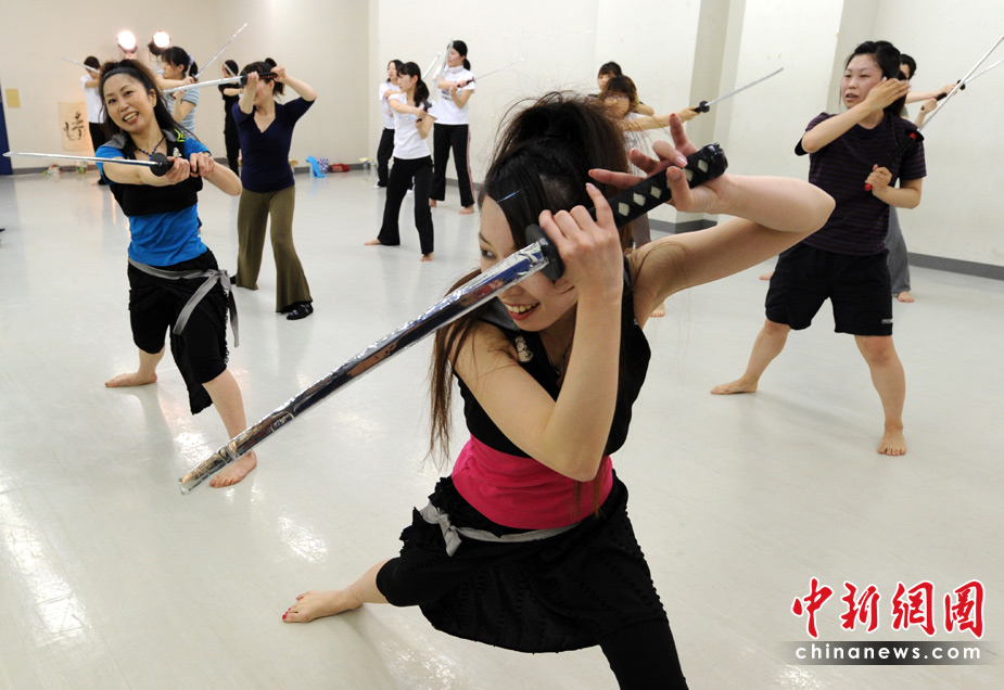 近日,在日本東京,眾多白領(lǐng)女性學(xué)起了日本傳統(tǒng)的武士刀,用來減壓。