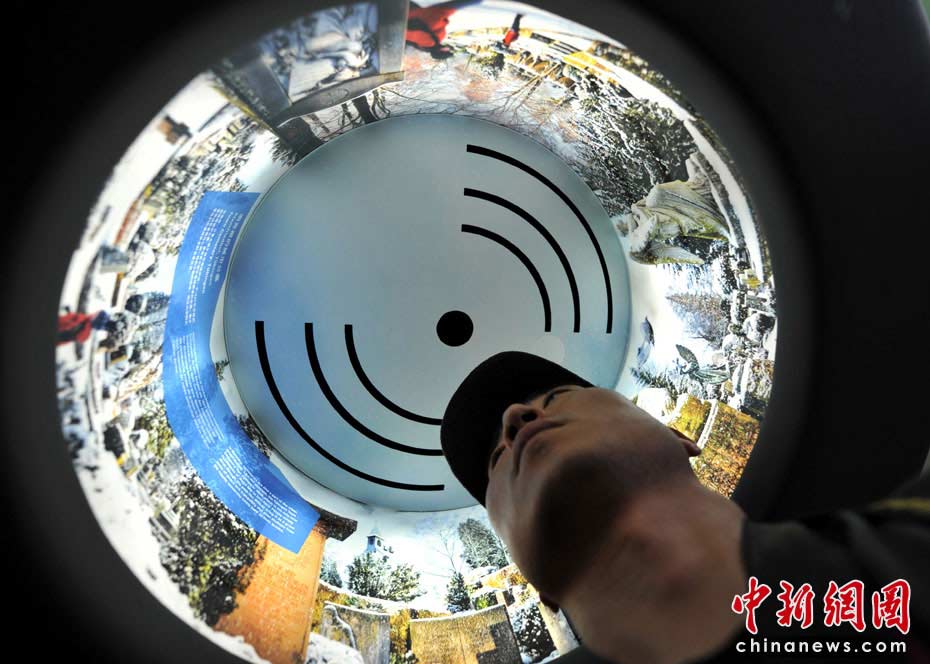 圖為德國館內(nèi)的360度環(huán)繞視聽展示。 中新網(wǎng)記者 王紅綱 攝
