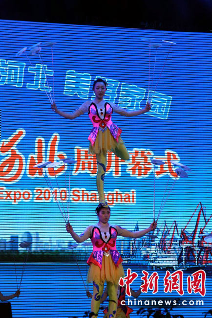 5月14日,上海世博會“河北活動周”在寶鋼大舞臺啟幕,戰(zhàn)鼓、旱船、拉花、草編、石雕、年畫、雜技、皮影戲……燕趙大地的傳統(tǒng)絕活一一登場。“河北活動周”自14日持續(xù)至18日,將圍繞“京畿神韻”的主線,向世界展示河北省的經(jīng)濟(jì)和藝術(shù)魅力,是繼直轄市北京、天津之后,第一個由省份在世博會上舉辦的活動周。中新社記者 殷春永 攝