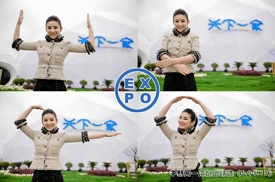 日前上海女孩黃奕來到世博館“天下一家”未來館門口拍攝一組手勢大片,身體力行教大家如何演繹EXPO的含義。圖片來源:中國新聞網(wǎng)>>點擊觀看詳細內(nèi)容