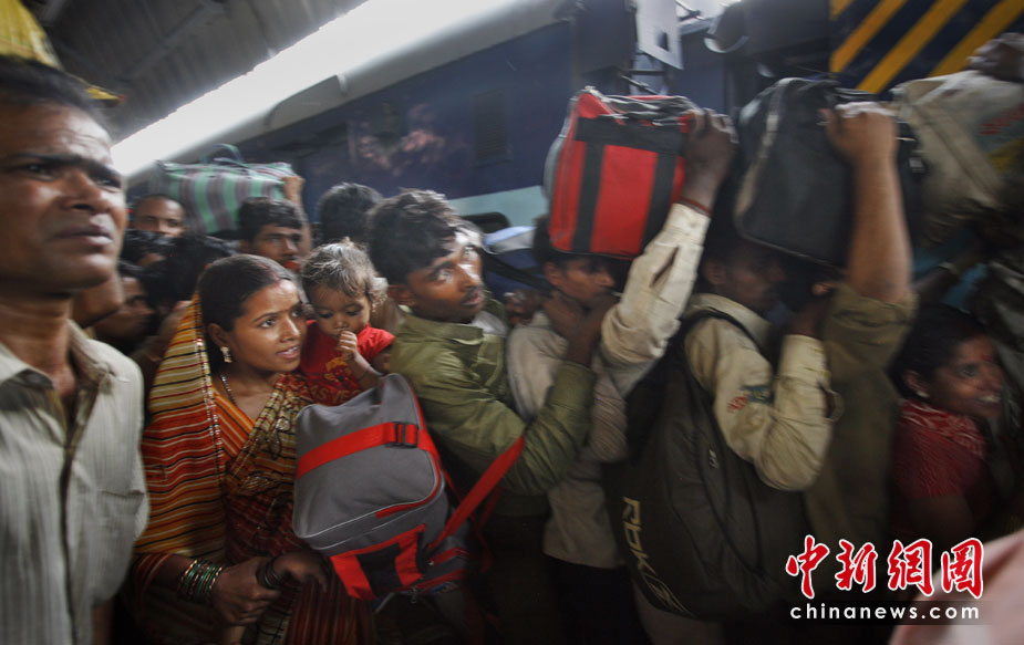 16日,印度新德里的一個火車站發(fā)生踩踏事故,造成2死9傷。一班列車提早進站且?吭诹硪坏貐^(qū),擴音器一宣布消息,立刻有數(shù)百人蜂涌至列車?康脑屡_,一名婦人與一名小孩因此被踩死。 圖片來源:中國新聞網(wǎng)