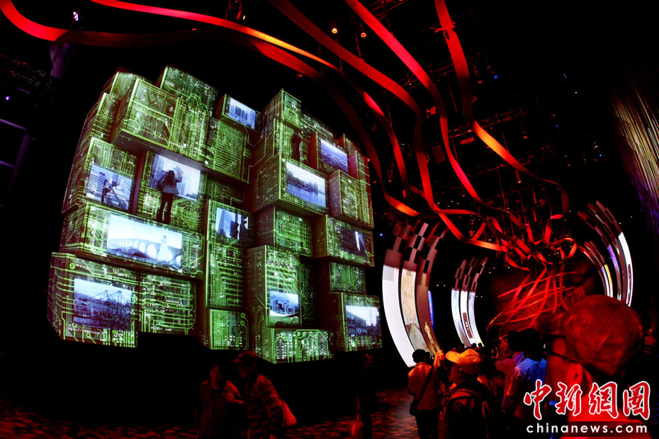 在世博會眾多的展館中,各類的大屏幕展示讓參觀者有如身臨其境,也讓游客們充分感受不同國家、不同地域的文化特色及先進(jìn)科技理念,如幻似夢的屏幕光影也成為本次世博的最佳看點(diǎn)。圖為加拿大館。中新社記者 杜洋 攝