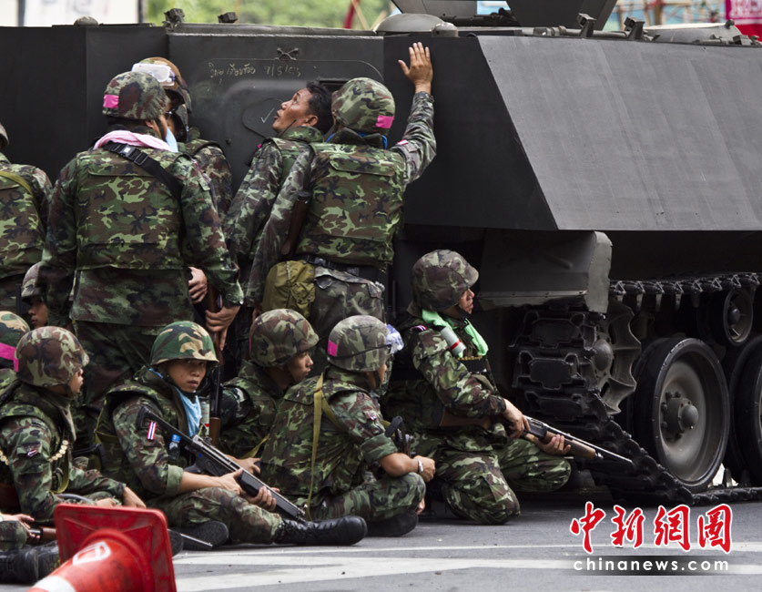 19日清晨,數(shù)百名軍警在武裝車輛的掩護下向反政府示威者在曼谷的大本營聚集。自上周四紅衫軍與政府在曼谷爆發(fā)沖突以來,已經(jīng)導致39人死亡,數(shù)百人受傷。