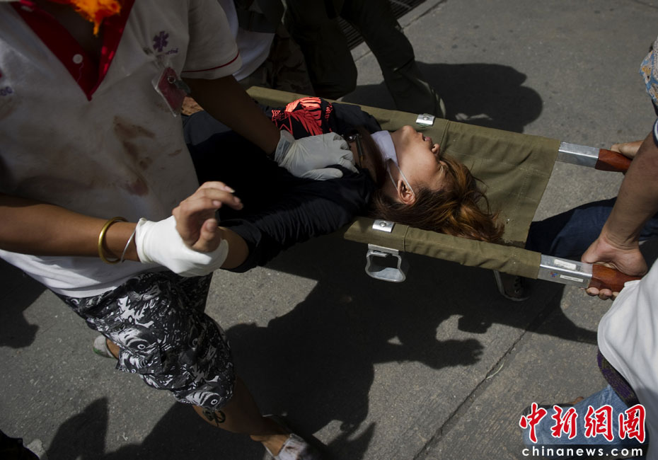 泰國紅衫軍領(lǐng)導(dǎo)人乍都蓬19日下午1時決定,向曼谷警方投降。同時向警方投降的還包括納塔兀、素蓬、翁醫(yī)師等紅衫軍核心領(lǐng)導(dǎo)人。紅衫軍領(lǐng)導(dǎo)人納塔兀責(zé)其支持者宣布,結(jié)束紅衫軍已持續(xù)了兩個多月的集會示威行動。圖片來源:中國新聞網(wǎng)