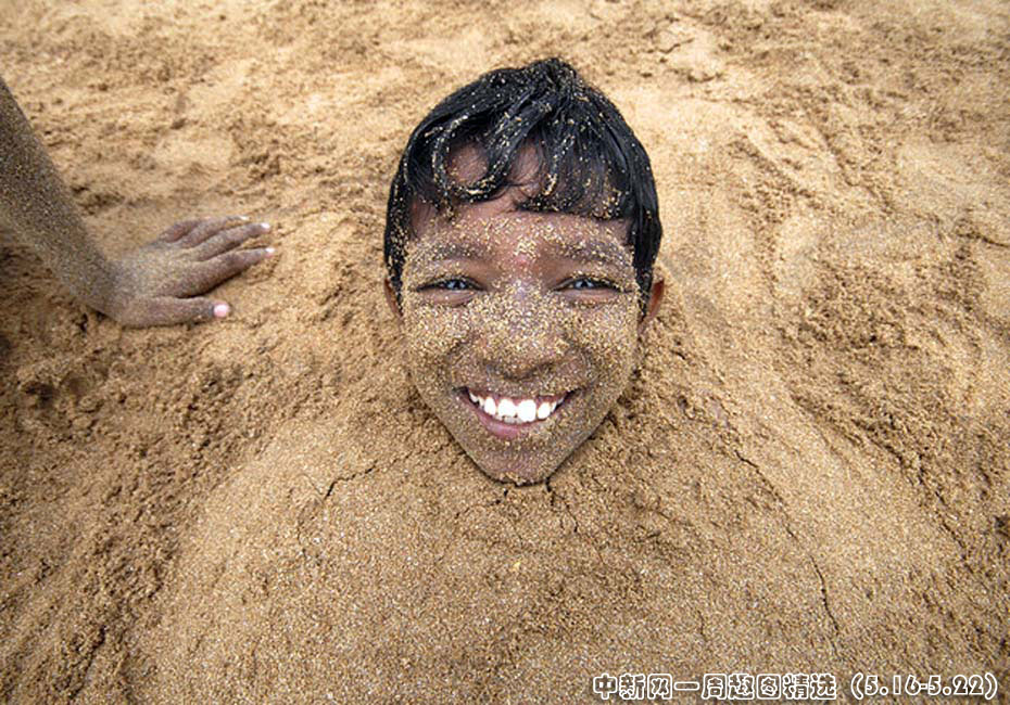 5月19日,印度孟買兒童在珠湖海灘玩耍。據(jù)官員和新聞報導稱,一股灼人熱浪席卷整個印度,許多城市氣溫在42至45攝氏度之間,造成160多人死亡。圖片來源:中國新聞網(wǎng)