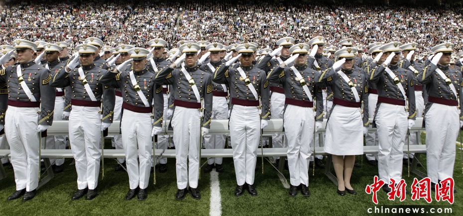 5月22日,美國紐約州北部哈德遜河西岸西點鎮(zhèn)的西點軍校舉行2010年度畢業(yè)典禮,美國總統(tǒng)奧巴馬出席典禮。本屆共有1002名學員獲得理學學士學位,并被授予陸軍少尉軍銜。圖片來源:中國新聞網(wǎng)