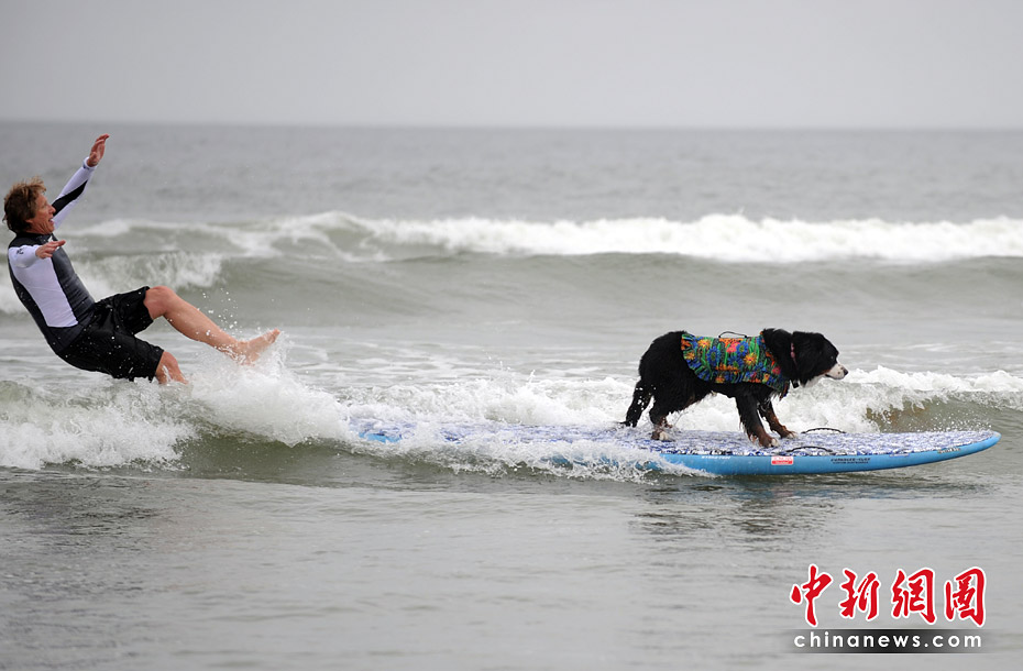 美國(guó)加州舉行狗狗沖浪比賽