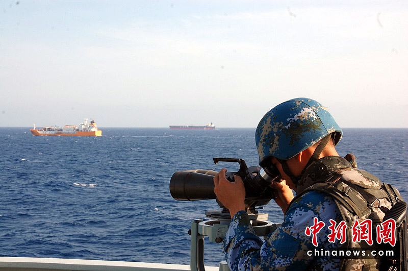 2009年1月29日,中國(guó)海軍首批護(hù)航編隊(duì)“武漢”艦收到希臘商船“ELENI G”號(hào)發(fā)出的緊急呼救。編隊(duì)立即派直升機(jī)載著特戰(zhàn)隊(duì)員前往救援,發(fā)現(xiàn)3艘海盜快艇正從不同方向圍攻希臘商船。特戰(zhàn)隊(duì)員發(fā)射信號(hào)彈,成功將其解救。船長(zhǎng)激動(dòng)的說:“感謝上帝!感謝中國(guó)海軍!”
