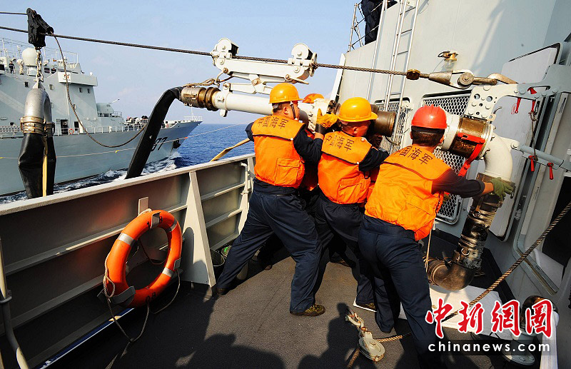 3月12日,在阿拉伯海上進(jìn)行第二次補(bǔ)給。江山 攝