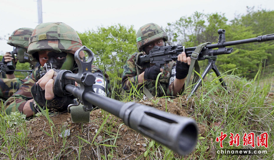 5月24日,韓國軍隊在靠近韓朝非軍事區(qū)的揚口舉行軍事演習(xí)。圖片來源:中國新聞網(wǎng)
