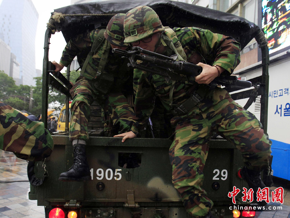 5月24日,韓國(guó)軍隊(duì)在靠近韓朝非軍事區(qū)的揚(yáng)口舉行軍事演習(xí)。圖片來(lái)源:中國(guó)新聞網(wǎng)