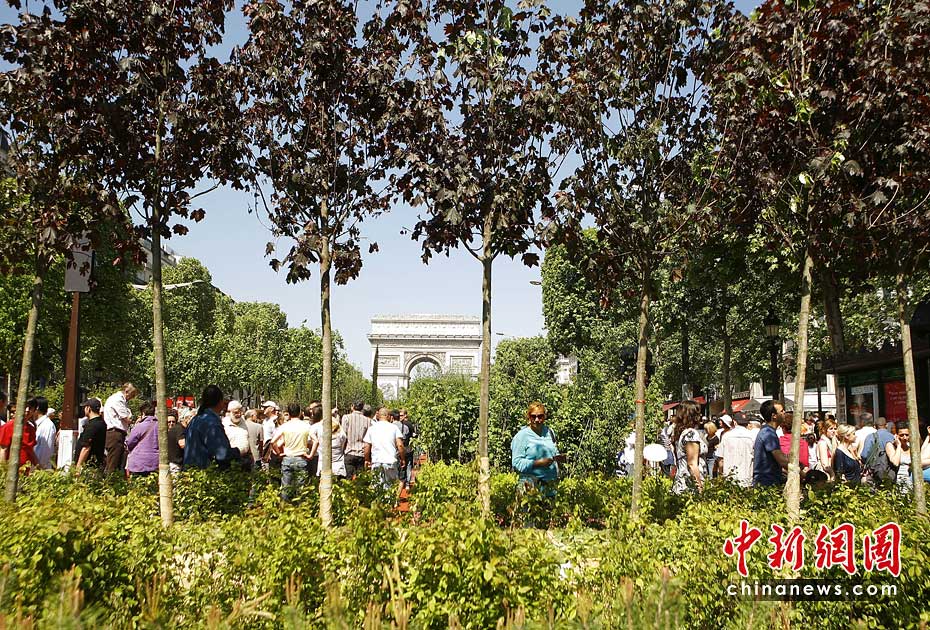 5月24日,法國總統(tǒng)薩科齊和妻子布呂尼參觀在法國巴黎舉行的“自然首都”展。該項展覽是由街頭藝術(shù)家加德·魏爾聯(lián)手法國“青年農(nóng)民協(xié)會”和林業(yè)協(xié)會共同發(fā)起的的,將百余種農(nóng)作物、樹木和動物“齊聚”法國首都巴黎的香榭麗舍大街,令這條“香街”變身“綠色的自然世界”。圖片來源:中國新聞網(wǎng)