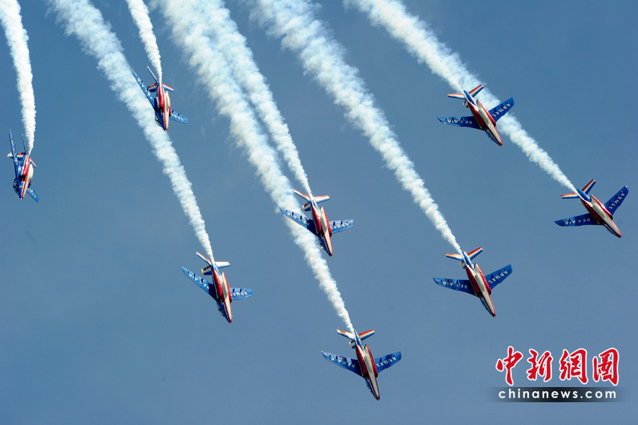 5月25日,法國巡邏兵特技飛行表演隊在普羅旺斯地區(qū)進行驚險的飛行表演。