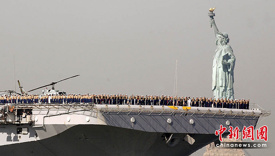 當(dāng)?shù)貢r(shí)間5月26日,美國第23屆紐約艦隊(duì)周開幕,包括“硫磺島”號兩棲攻擊艦在內(nèi)的11艘參加艦隊(duì)周活動(dòng)的軍艦由南向北在哈得孫河面上游弋。紐約民眾將以?吭诼D哈得孫河86號碼頭的“無畏號”航母博物館為中心,展開為期一周的慶祝和紀(jì)念活動(dòng)。圖片來源:中國新聞網(wǎng)