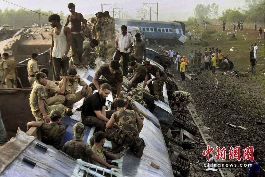 印度東部西孟加拉邦火車遇襲脫軌事故已經(jīng)發(fā)生30多個小時,29日救援人員繼續(xù)在現(xiàn)場進(jìn)行搜救工作。西孟加拉邦警察局長表示,截至目前已經(jīng)發(fā)現(xiàn)110具尸體。同時仍有多達(dá)50人下落不明。圖為救援現(xiàn)場。