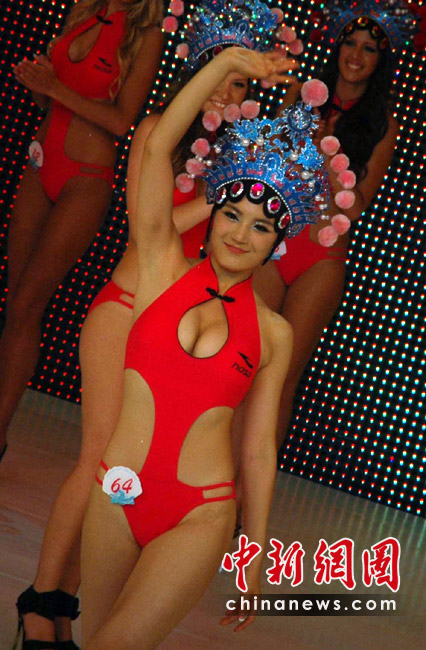 5月29日晚,第35屆國(guó)際比基尼小姐全球總決賽在三亞“美麗之冠”落下帷幕,22歲的羅馬尼亞選手Diana Irina Boanca摘得冠軍?倹Q賽還評(píng)選出了四季小姐,18歲的中國(guó)選手趙茜獲得“秋季小姐”,澳大利亞、委內(nèi)瑞拉和拉脫維亞選手分別獲得春、夏、冬季小姐。共有來(lái)自世界各地的64位佳麗參加了總決賽的角逐。當(dāng)晚,佳麗們展示了各自國(guó)家或地區(qū)特色的民族服飾,用不同的方式展示了不同風(fēng)格的比基尼“秀”,性感迷人。 中新社記者 尹海明攝