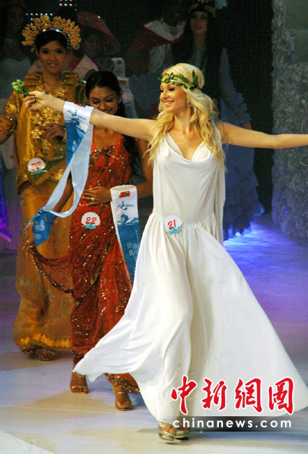 5月29日晚,第35屆國際比基尼小姐全球總決賽在三亞“美麗之冠”落下帷幕,22歲的羅馬尼亞選手Diana Irina Boanca摘得冠軍?倹Q賽還評選出了四季小姐,18歲的中國選手趙茜獲得“秋季小姐”,澳大利亞、委內(nèi)瑞拉和拉脫維亞選手分別獲得春、夏、冬季小姐。共有來自世界各地的64位佳麗參加了總決賽的角逐。當晚,佳麗們展示了各自國家或地區(qū)特色的民族服飾,用不同的方式展示了不同風(fēng)格的比基尼“秀”,性感迷人。 中新社記者 尹海明攝