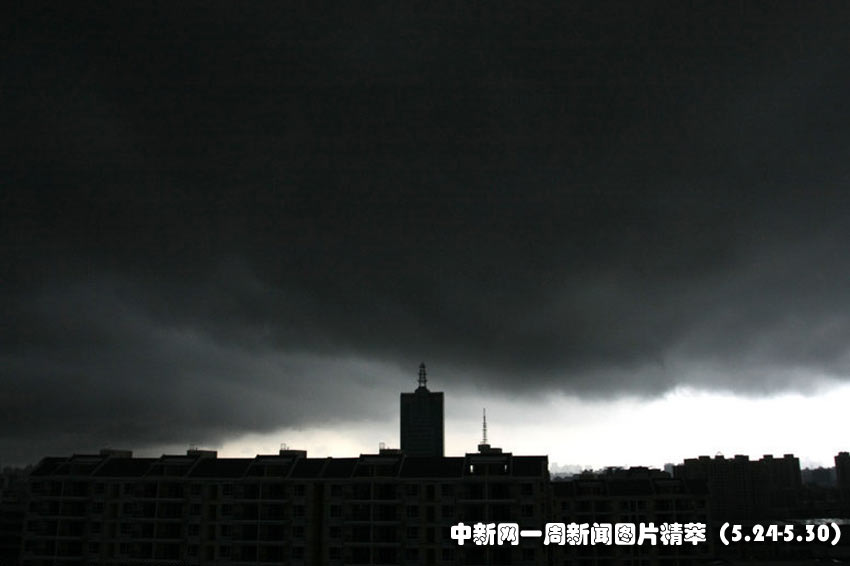 26(周三),一場暴風(fēng)雨即將來臨前的海南海口天空烏云翻滾,出現(xiàn)“烏云壓城 城欲摧”景觀。張茂 攝