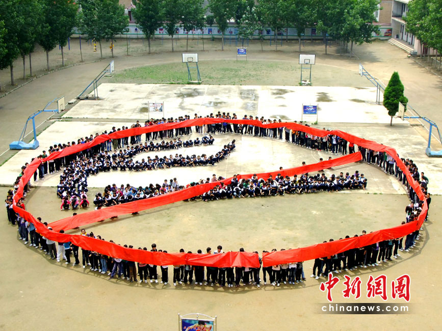 5月31日是第23個“世界無煙日”,今年的主題是:性別與煙草——抵制針對女性的市場營銷。吸煙有害健康早已成為不爭的事實。有關(guān)醫(yī)學(xué)研究表明,吸煙可導(dǎo)致心腦血管疾病、癌癥、慢性阻塞性肺病等多種疾病,已成為繼高血壓之后的全球第二號殺手。為了您的健康,請熄滅您手中的香煙。圖為5月28日,河南省靈寶市陽平一中,500多名學(xué)生用廢舊橫幅拼成“禁止吸煙”的圖案,倡導(dǎo)“無煙校園,低碳生活”的理念。中新社發(fā) 趙華 攝