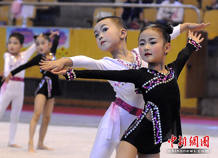 5月28日,小朋友表演幼兒基本體操。當(dāng)日,河南省平頂山市體育部門舉辦2010年幼兒基本體操表演大賽,來(lái)自全市21個(gè)幼兒園的270余名兒童參加表演,以體育健身的方式迎接“六一”國(guó)際兒童節(jié)的到來(lái)。中新社發(fā) 王雙正 攝