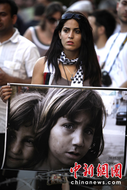 以色列海軍31日對國際人道救援船隊(duì)發(fā)動襲擊,船上至少有9名支持巴勒斯坦的活動人士被以軍打死,眾多國家和國際組織紛紛表示“震驚”,多國民眾走上街頭,對襲擊事件表示抗議。圖為在塞浦路斯,民眾在街頭游行抗議。