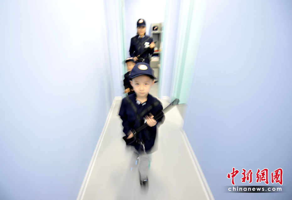 圖為“小警察”走出“警局”。 中新網(wǎng)記者 王紅綱 攝