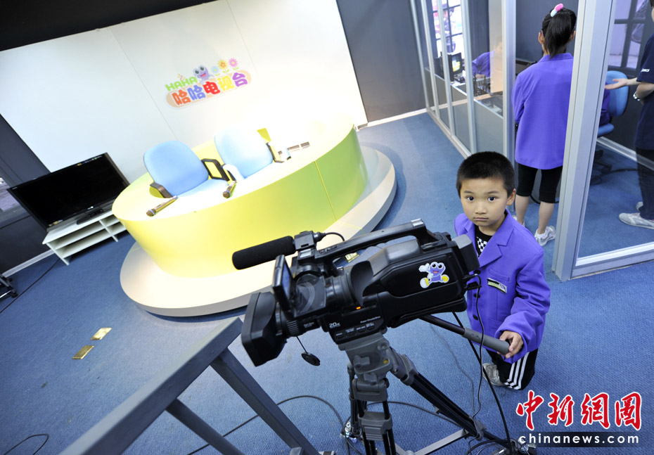 圖為孩子在體驗做一個攝影師。 中新網(wǎng)記者 王紅綱 攝
