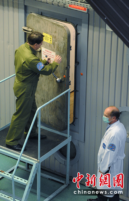 當(dāng)?shù)貢r(shí)間6月3日14時(shí),“火星-500”實(shí)驗(yàn)艙最后一道艙門(mén)關(guān)閉,人類(lèi)歷史上首次模擬火星載人航天飛行試驗(yàn)就此拉開(kāi)帷幕。圖片來(lái)源:中國(guó)新聞網(wǎng)