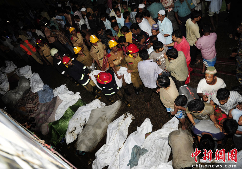 6月3日,孟加拉國(guó)首都達(dá)卡夜間發(fā)生一起重大火災(zāi),到目前為止已造成至少87人死亡,上百人受傷。圖為遇難者家屬辨認(rèn)火災(zāi)遇難者的遺體。圖片來源:中國(guó)新聞網(wǎng)