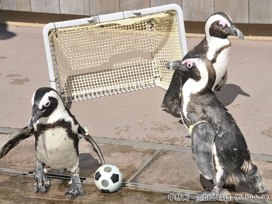 6月1日,在日本東京一家海洋館里,幾只企鵝“披掛上陣”,進行了一場別開生面的足球賽,迎接世界杯。圖片來源:中國新聞網(wǎng)>>點擊觀看詳細內(nèi)容