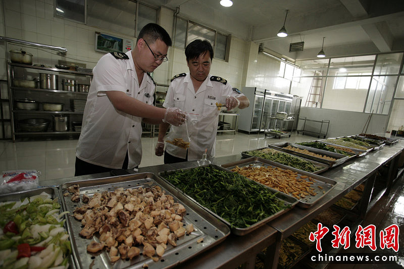 2010年6月4日,山東省濰坊市衛(wèi)生系統(tǒng)的工作人員檢查濰坊城區(qū)的高考考點食堂,為高考“保駕護航”。對此,高新區(qū)衛(wèi)生局購置了針對農(nóng)殘、亞硝酸鹽、重金屬等快速檢測的食品安全快速檢測設備,確?忌嬍嘲踩。孫樹寶/CFP