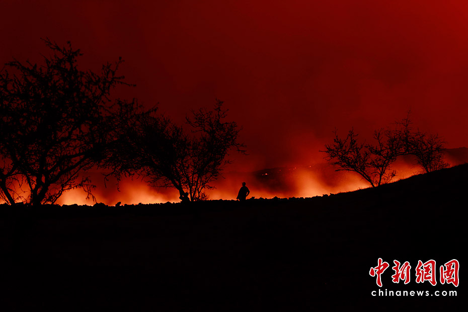 當(dāng)?shù)貢r間6月4日,危地馬拉帕卡亞火山噴發(fā),涌出大量熔巖,迫使周邊數(shù)千居民緊急疏散。圖片來源:中國新聞網(wǎng)