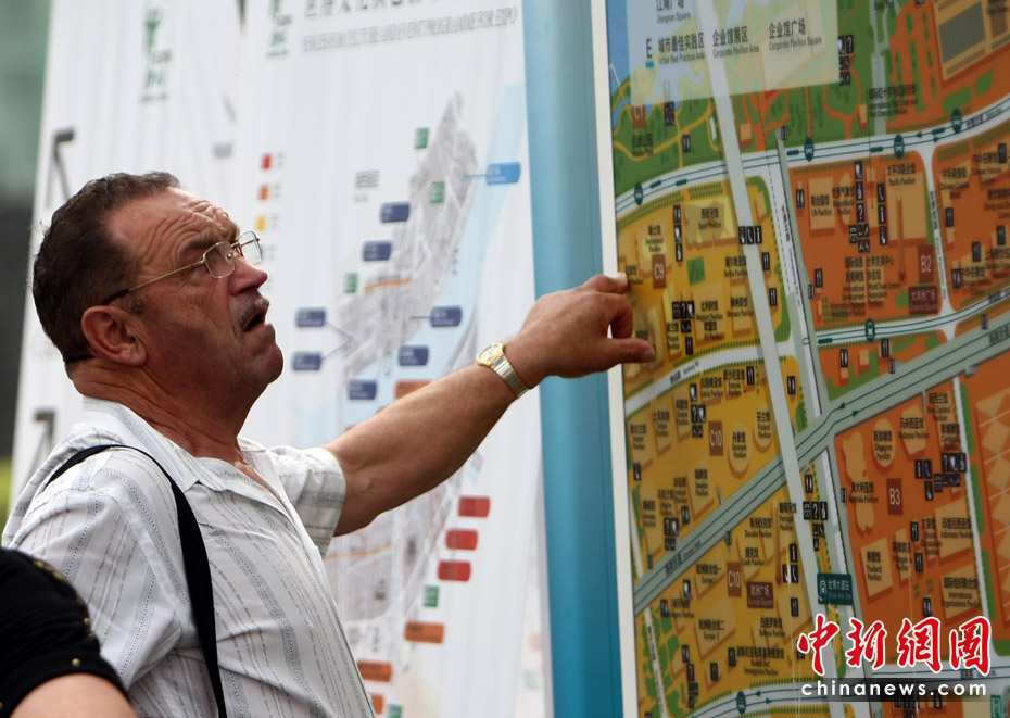 截至6月5日19點30分,上海世博會累計參觀者已超過1000萬人次。據(jù)悉,上海世博會的規(guī)劃用地為5.28平方公里,約242個國家和國際組織參展分布在浦東和浦西兩大區(qū)域。要想在這么大的地方找到自己想去的地方,那么世博地圖就是必須的裝備。圖為上海世博園內(nèi)游客正在地圖上尋找自己要去的地方。中新社記者 杜洋 攝