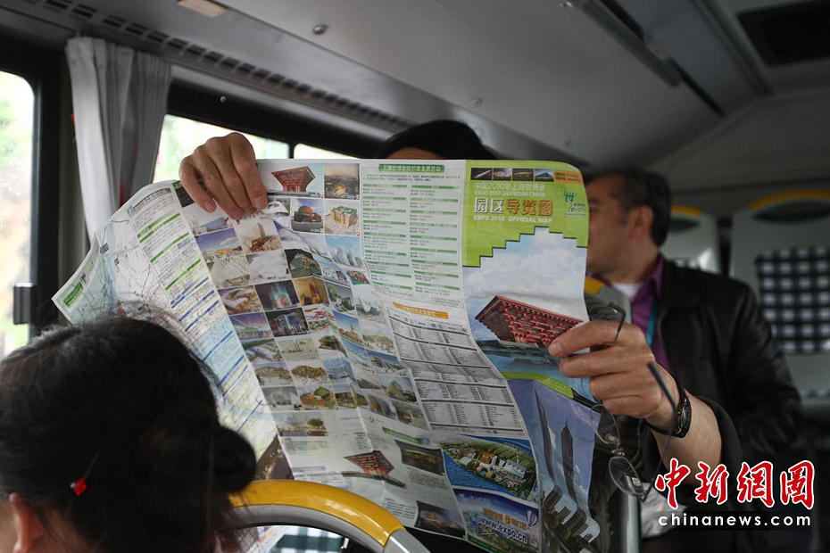 截至6月5日19點30分,上海世博會累計參觀者已超過1000萬人次。據(jù)悉,上海世博會的規(guī)劃用地為5.28平方公里,約242個國家和國際組織參展分布在浦東和浦西兩大區(qū)域。要想在這么大的地方找到自己想去的地方,那么世博地圖就是必須的裝備。圖為上海世博園內(nèi)游客正在地圖上尋找自己要去的地方。中新社記者 杜洋 攝