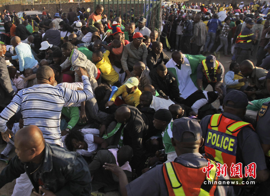 6月6日,在南非約翰內(nèi)斯堡市郊的馬庫隆球場進(jìn)行的尼日利亞隊(duì)和朝鮮隊(duì)的世界杯熱身賽前發(fā)生了球迷踩踏事件。這起惡性踩踏事件共造成9人受傷,其中包括1名安保人員。據(jù)悉,在惡性踩踏事件發(fā)生前后,當(dāng)?shù)匕踩藛T對(duì)球迷們進(jìn)行了鎮(zhèn)壓,惡性踩踏事件很可能與此次鎮(zhèn)壓有關(guān)。