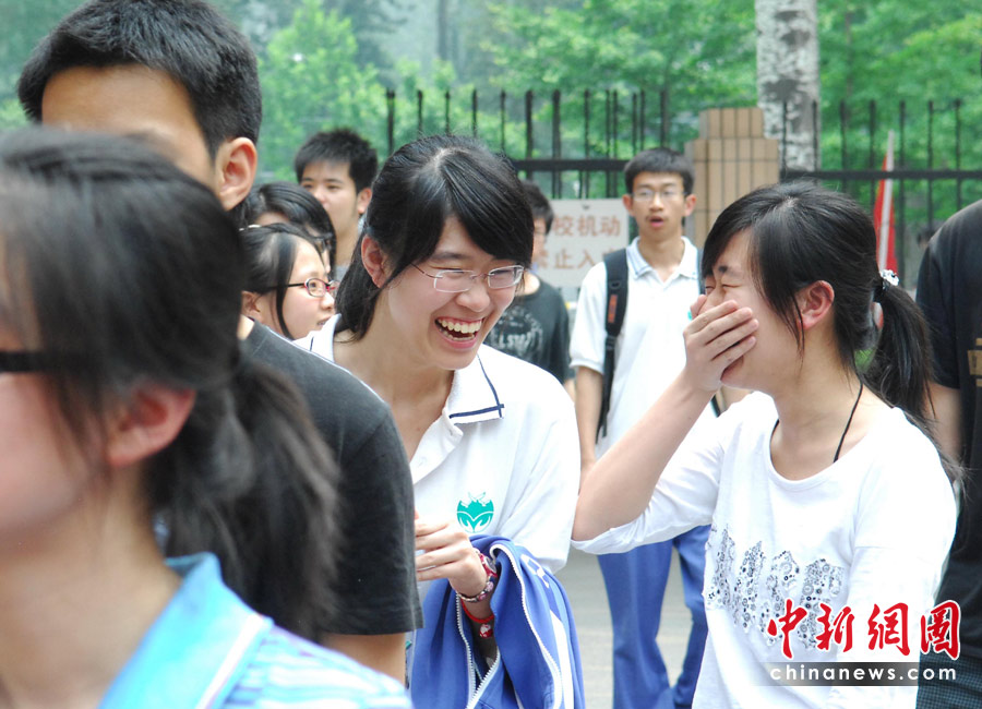 6月7日,為期兩天的2010年普通高等學(xué)校招生全國統(tǒng)一考試開考,全國將有957萬考生走進考場。圖為學(xué)生走出考場后相互交流心得。中新社發(fā) 侯宇 攝