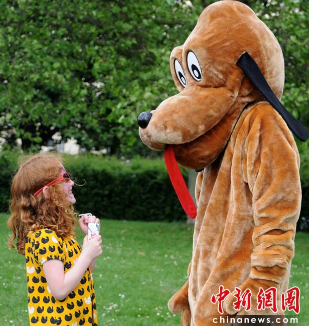 當(dāng)?shù)貢r(shí)間2010年6月6日,英國(guó)倫敦舉行卡姆登綠色市集(Camden Green Fair),這是英國(guó)倫敦每年環(huán)保領(lǐng)域的“重頭戲”。本屆市集的主旨是要喚起大眾對(duì)環(huán)境問題的關(guān)注,選擇更加可持續(xù)發(fā)展的生活方式。據(jù)活動(dòng)主辦方預(yù)計(jì),本屆市集將吸引來自英國(guó)各地和世界各國(guó)的2萬多人參加。圖為素食推廣志愿者扮成卡通狗吸引孩子。Fiona/攝 Fiona 馬小剛/文