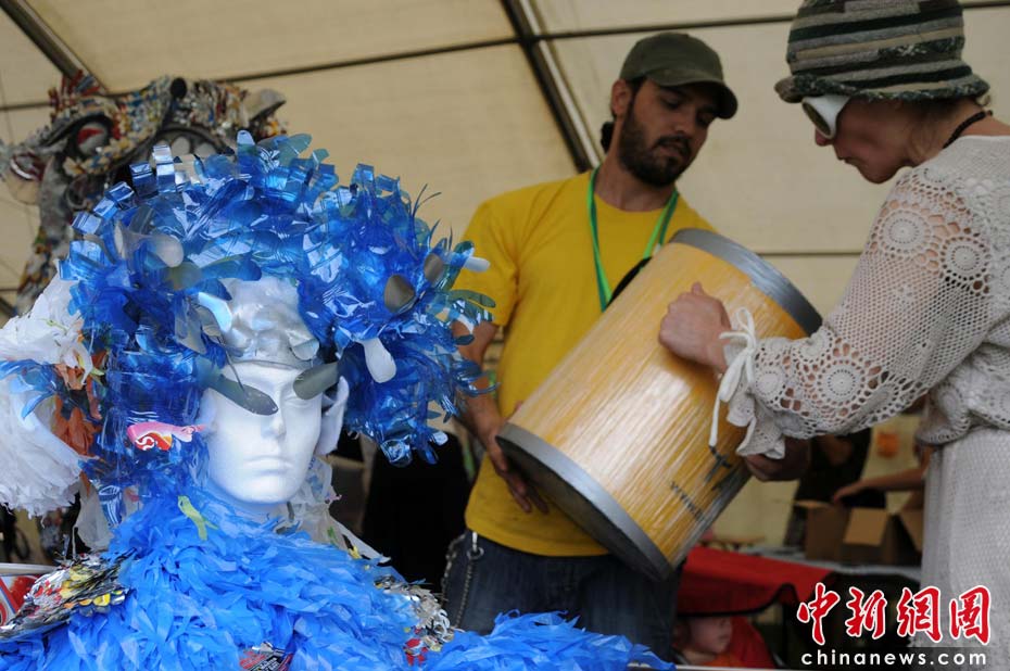 當(dāng)?shù)貢r(shí)間2010年6月6日,英國倫敦舉行卡姆登綠色市集(Camden Green Fair),這是英國倫敦每年環(huán)保領(lǐng)域的“重頭戲”。本屆市集的主旨是要喚起大眾對環(huán)境問題的關(guān)注,選擇更加可持續(xù)發(fā)展的生活方式。據(jù)活動主辦方預(yù)計(jì),本屆市集將吸引來自英國各地和世界各國的2萬多人參加。圖為藝術(shù)家們用回收的塑料制品制作的時(shí)尚作品。仔細(xì)看還能找到“品客薯片”包裝的細(xì)微痕跡。Fiona/攝 Fiona 馬小剛/文