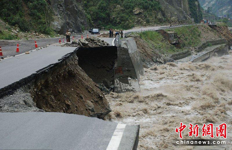 連日強(qiáng)降雨致使四川阿壩州茂縣岷江河水位不斷上漲,5月7日晚,213國道茂縣段一段路基被洪水沖毀約100米,這一路段徹底中斷,這已經(jīng)是這條有著“震中生命線”之稱的國道,在近期內(nèi)的第二次中斷。
