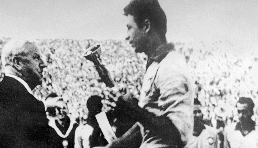 1962年世界杯在南美洲的智利舉行,巴西的頭號(hào)明星是29歲的加林查,一個(gè)綽號(hào)“小鳥”、雙腿天生有殘疾的人。在淘汰賽3比1擊敗英格蘭、4比2勝智利的比賽中,加林查各進(jìn)2球。世界杯結(jié)束后,巴西隊(duì)堅(jiān)持進(jìn)攻的打法征服了許多歐洲教練……