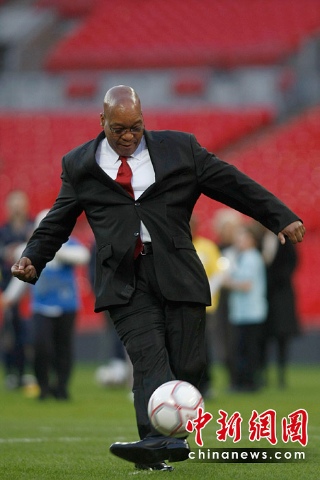 作為一項(xiàng)全球運(yùn)動(dòng),足球不單是運(yùn)動(dòng)員的最愛,同時(shí)也受到多國政要的熱愛。傳統(tǒng)列強(qiáng)英法德西的政府首腦曾先后在不同場合大秀自己的球技,而作為2010年世界杯東道主南非的總統(tǒng)祖瑪也不例外。圖片來源:中國新聞網(wǎng)