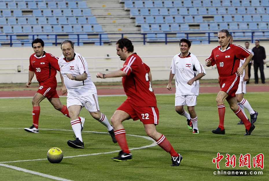 圖為2010年4月13日,黎巴嫩貝魯特,當(dāng)?shù)氐恼渭覀冞M(jìn)行一場(chǎng)友誼賽紀(jì)念內(nèi)戰(zhàn)爆發(fā)35周年。