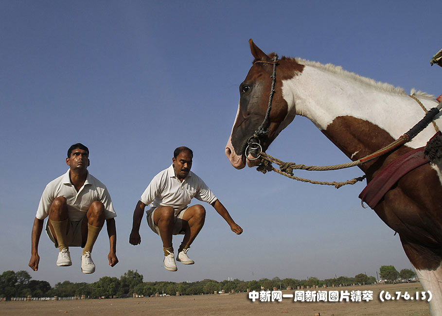 周三(9日),在印度阿拉哈巴德,警察正在做練習(xí),此時一匹馬正好經(jīng)過。