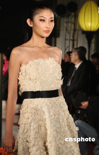 11月12日晚,MOISELLE (慕詩國(guó)際集團(tuán))慶祝成立10周年之際,特別選址于具有濃郁中國(guó)文化氣息的北京中國(guó)會(huì)(China Club) 舉行07年秋冬系列時(shí)裝發(fā)布會(huì),MOISELLE素來以時(shí)尚設(shè)計(jì)、優(yōu)質(zhì)布料、精致造工及高雅風(fēng)格見稱,塑造出典雅及女性化的風(fēng)格,圖為模特在U形天橋上完美演繹 MOISELLE‘07秋冬系列作品。中新社發(fā) 錢興強(qiáng) 攝