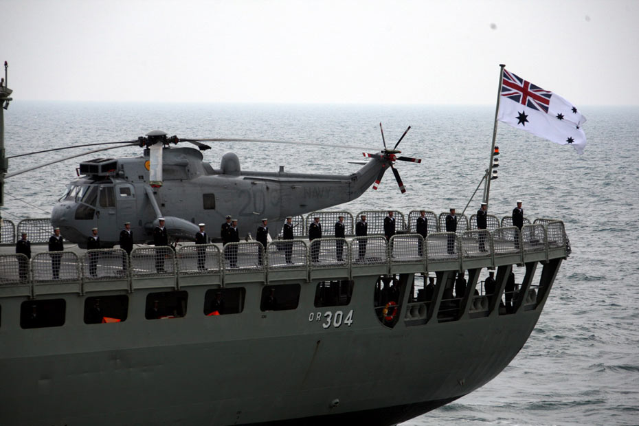 中國歷史上的首次多國海軍檢閱活動四月二十三日下午在青島附近黃海海域舉行。中國國家主席、中央軍委主席胡錦濤乘閱兵艦“石家莊”號導彈驅逐艦,檢閱中國海軍的潛艇、水面艦艇、海軍航空兵和海軍陸戰(zhàn)隊等作戰(zhàn)兵種,并檢閱了來訪的十四個國家的二十一艘艦艇。圖為參加檢閱的外國軍艦。中新社發(fā) 張雷 攝