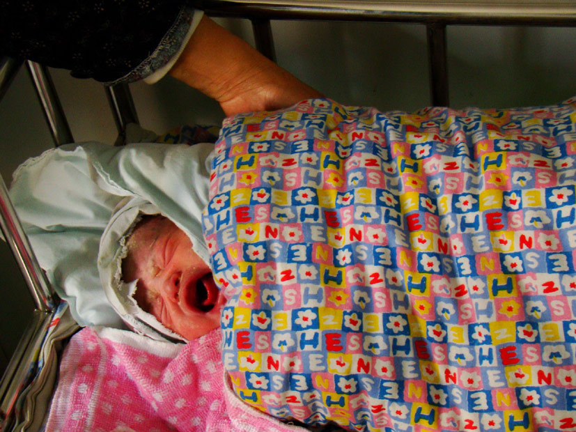 4月23日,在汶川大地震極重災(zāi)區(qū)什邡市婦幼保健院的板房醫(yī)院內(nèi),震后有傷亡家庭再生育的婦女王堯芳產(chǎn)下了一個(gè)健康的小寶寶。記者了解到,王堯芳家住什邡市紅白鎮(zhèn),在該鎮(zhèn)做裁縫。她11歲的兒子小明在去年的“5.12”汶川大地震中遇難。中新社發(fā) 肖龍聯(lián) 攝
