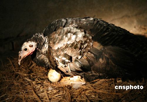 近日,在武漢東湖鳥語林,一支成年雌性火雞正在孵一枚企鵝蛋,據(jù)了解,這枚企鵝蛋是武漢東湖海洋世界的企鵝“小美人”11月13日產(chǎn)下的,由于“小美人”近日還要產(chǎn)蛋,鳥語林的鳥類專家決定用與企鵝孵化溫度最接近的火雞來代替企鵝“媽媽”孵蛋。中新社發(fā) 王振武 攝