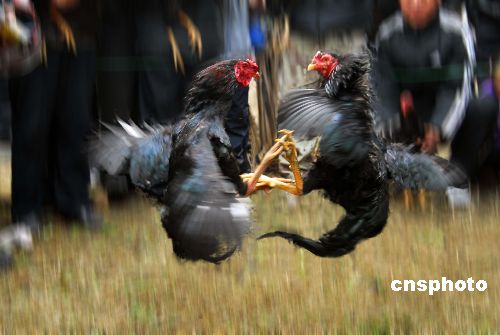 2月8日,大年初二,安徽淮北市童亭礦工會(huì)舉辦了一場(chǎng)斗雞比賽。10多對(duì)體型高大,魁梧強(qiáng)健,性情兇猛的斗雞,面對(duì)對(duì)手個(gè)個(gè)針?shù)h相對(duì),動(dòng)作敏捷,嘴腿并用,重爪烈翅,騰閃擊打。據(jù)了解,斗雞是我國(guó)古老的玩賞型雞種,有著數(shù)千年歷史,斗雞場(chǎng)面激烈緊張,極富刺激性和觀賞性。中新社發(fā) 胡珍玲(安徽) 攝